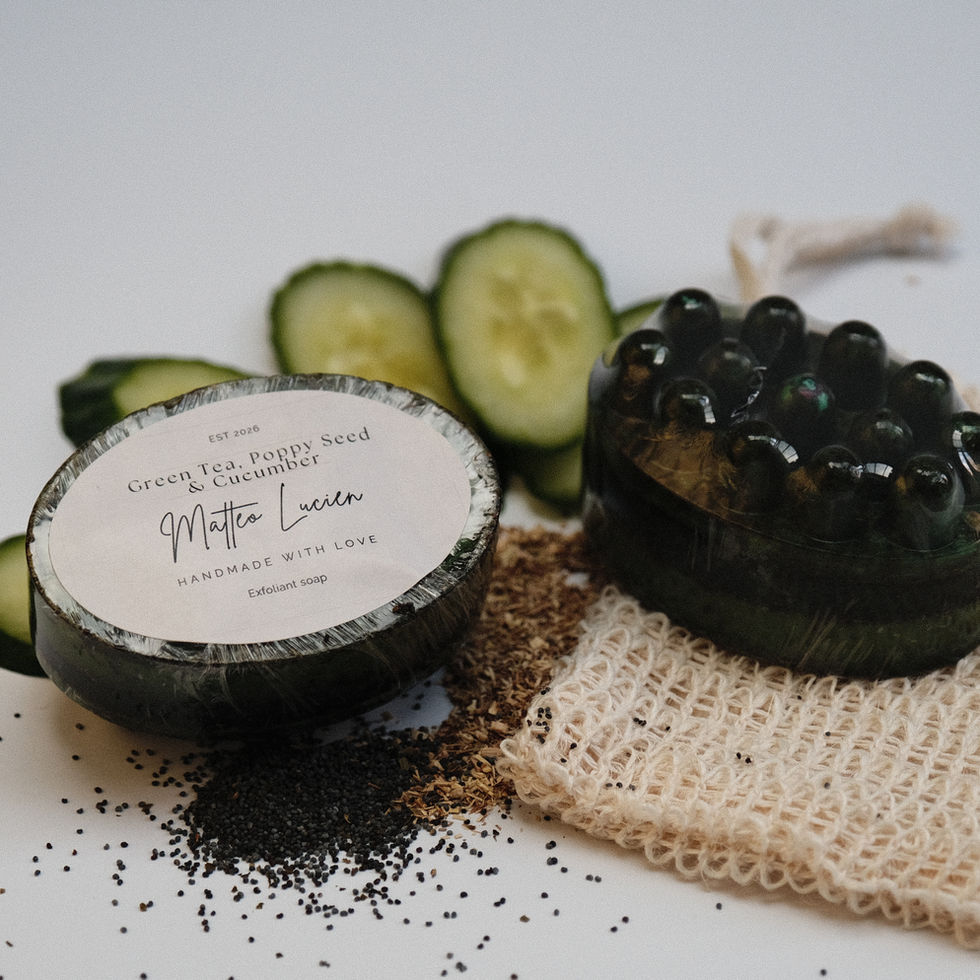 Poppy seeds act as a natural exfoliant, while the properties of green tea help protect the skin, and cucumber is known for its soothing and hydrating properties, leaving the skin feeling and smelling fresh.
