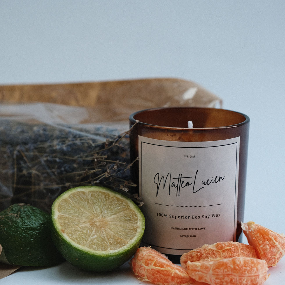 Our candles are handmade with love using superior eco soy wax, one of the highest-quality and most environmentally friendly waxes available. Eco soy wax burns cleaner, lasts longer, and does not release harmful chemicals into the air. Each candle is poured by hand into an amber glass jar and blended with a generous amount of premium fragrance oil - far more than most candles, ensuring a rich, long-lasting scent throw and an even, slow burn.
